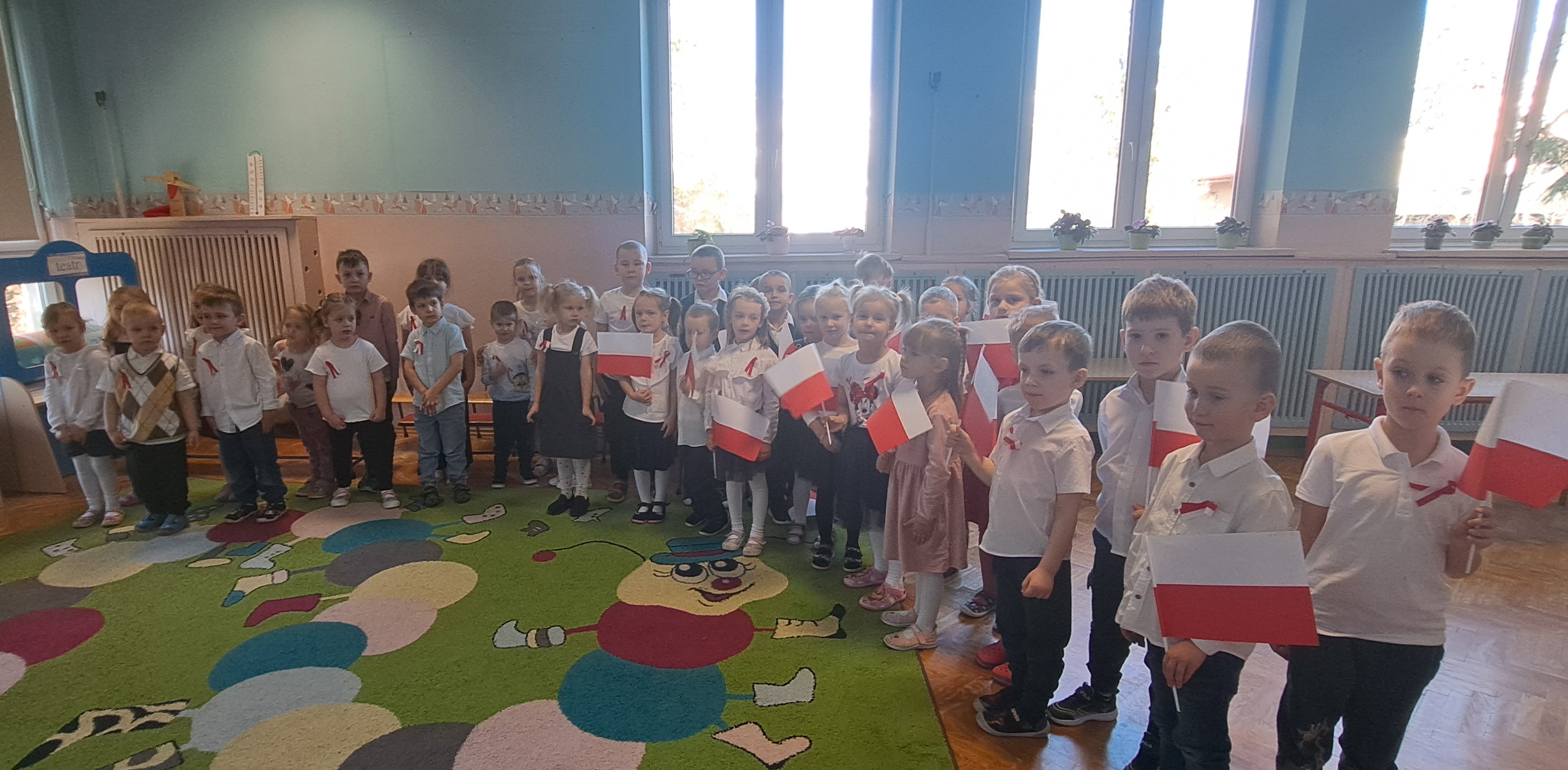 Przedszkolaki dumnie odśpiewały HYMN POLSKI , a także śpiewały piosenki o barwach Polski i recytowały wiersz " Kim jesteś? "