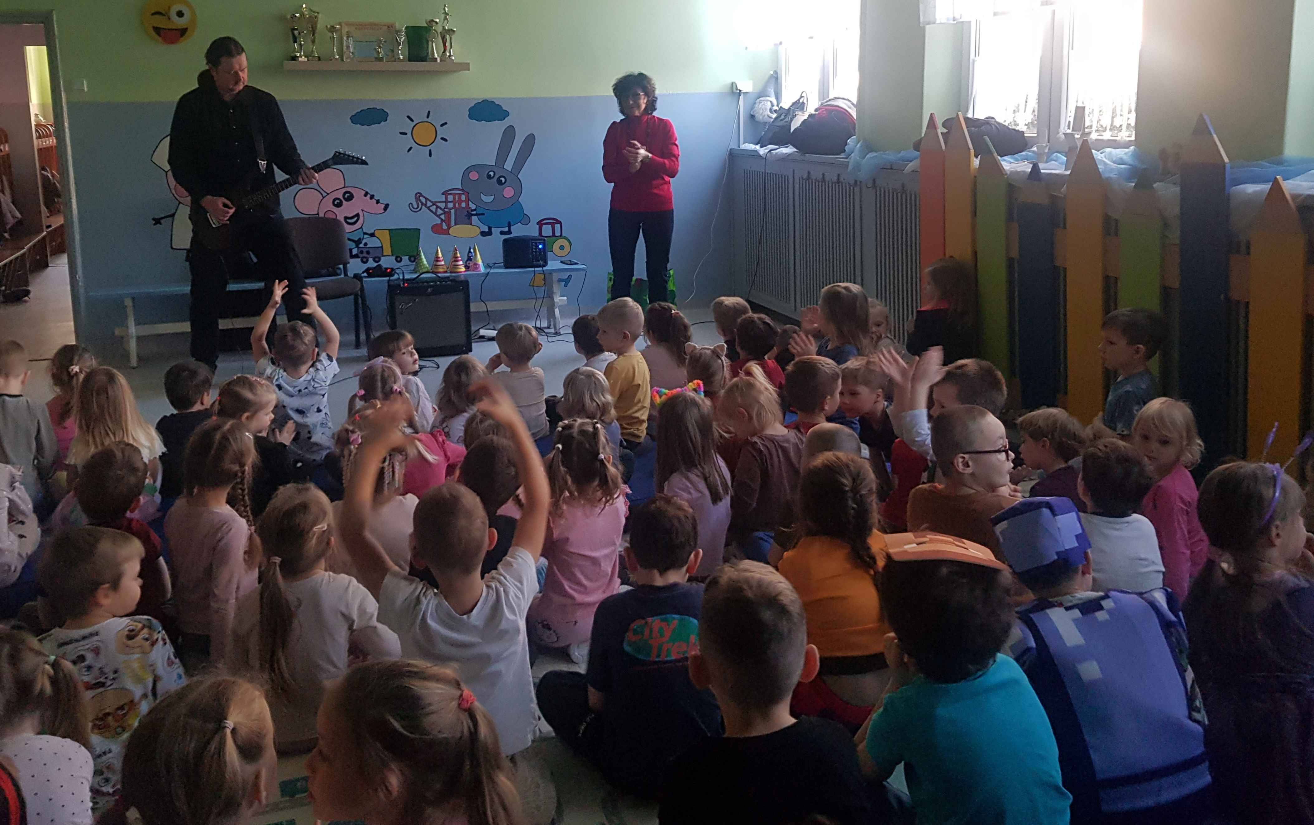 W czwartek w naszym przedszkolu odbył się wyjątkowy koncert muzyczny „Kochana Babcia, Kochany Dziadek”. Sala wypełniła się radosnymi dźwiękami, a mali słuchacze z ogromnym zainteresowaniem oglądali występ. Dzieci miały okazję posłuchać różnych instrumentów, śpiewać razem z artystami oraz aktywnie uczestniczyć w zabawach muzycznych. Na twarzach przedszkolaków gościł uśmiech, a radosna atmosfera sprawiła wszystkim wiele radości. Było to piękne i pełne emocji spotkanie z muzyką.